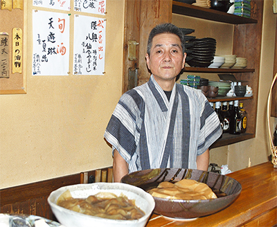 また酒の種類も豊富で、店主が各地の酒蔵と親交があることから、ほかに出回らない珍しい酒が楽しめるのも人気の秘密だ。「和食の基本をしっかり残していかなあかん。世界遺産にもなってることだし」。会話の端々に出る店主の関西弁も魅力に一役かっている。