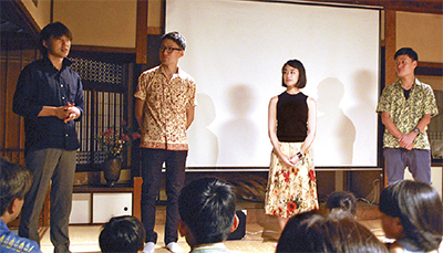 当日は2回の試写が行われ、関係者計約70人が参加。服部信明市長や作品に出演した子どもたちも来場した。上映後会場は拍手に包まれ三澤監督、作品出演者の福島珠理さんと三澤啓吾さん、茅ヶ崎館代表の森浩章さんが挨拶。三澤監督は「作品に協力頂いた地元の皆さんをお招きして上映でき嬉しい。茅ヶ崎の方にとって身近な場所が沢山登場したので、楽しんで頂けたのでは」と話した。また作品のコエグゼクティブプロデューサーも務めた森さんは「小津安二郎監督が脚本執筆のために常泊した宿として映画に縁が深い茅ヶ崎館が、次世代を担う才能ある若者の作品に協力できたことは意義深い」と語った。同作品は9月19日(土)から新宿K’s cinemaほかで順次劇場公開。
