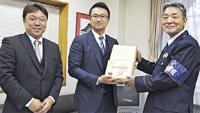 茅ヶ崎遊技場組合(趙元来組合長)が、防犯を呼びかける特製カレンダーを製作し、12月2日に茅ケ崎警察署の福島敬三署長に2600部を寄贈した。