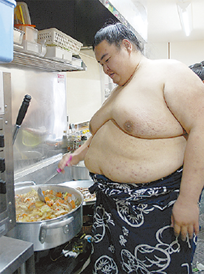 稽古のほか、部屋での足立さんの担当は多い。4日毎に当番が回ってくる「ちゃんこ番」のほか、毎朝毎夕の清掃、そして兄弟子の付き人任務。大関・稀勢の里の相撲環境を整える仕事は、足立さんを含めた付き人の3人が行う。稽古時に背中についた土を払うことや手形色紙の準備、外出時の付き添いなど。「自分は大関の2カ月後に入門したので、ずっと一緒にやってきました。その意味ではすごく近い存在ですが、大関ですからとても遠くにも感じます」。部屋では「だっち」と呼ばれる足立さんを、床鳴さんは「性格は髪と同じ、真っ直ぐで素直」と評し、部屋付き行司(幕下)の木村隆之助さんは「大きくて優しくて人気者」、弟弟子の淡路海さん(三段目)は「独特の濃さの味付けでちゃんこが上手」と続けた。