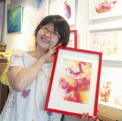 茅ヶ崎在勤の抽象画アーティスト仲丸友恵さん(51)の個展「オーガズミック」が7月1日からカフェキュアー(柳島海岸1の10)で開催されている。