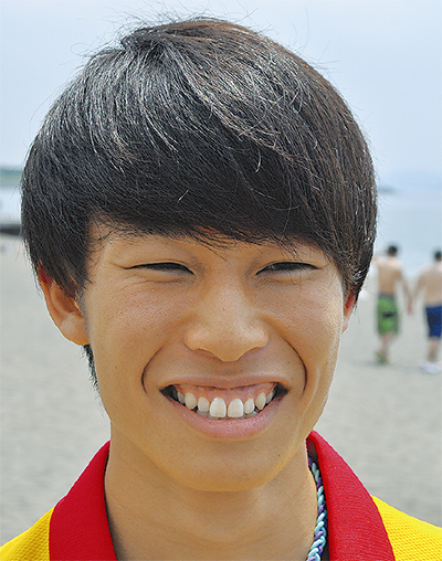 ○…東京都昭島市在住。兄と姉、両親に囲まれ育った。大学卒業後は消防士か警察官を志望。「ライフセービングが活かせると思う。監視員の先輩に消防士がいて、姉の夫は警察官でどちらも憧れの存在。彼らのように人の役に立つ仕事に就きたい」と瞳を輝かせる。空いている時間はほとんどライフセービングの大会に向けた練習に費やす。「息抜きは映画のDVD鑑賞。実は一人が好きで」とさらに目を細める。