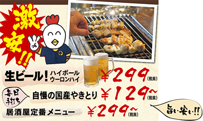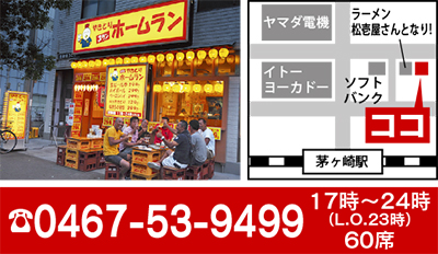 茅ヶ崎駅北口徒歩2分「やきとり3ランホームラン」は、激安生ビール&焼き鳥で4月のオープン以来リピーター急増中の繁盛店。