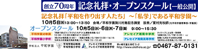 学校法人平和学園は、今年創立70周年を迎えました。茅ヶ崎市唯一の私立学校として茅ヶ崎の地に産声を上げ、地域の皆さまに支えられて大きな節目を迎えることができましたことに感謝申し上げます。