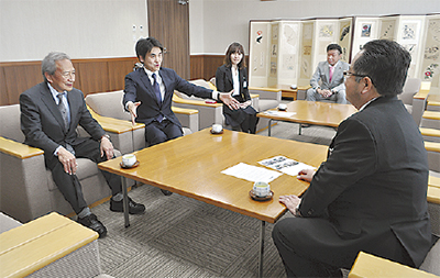 大坪社長は17日に市役所を訪れ、服部信明市長に視察の様子を報告した。