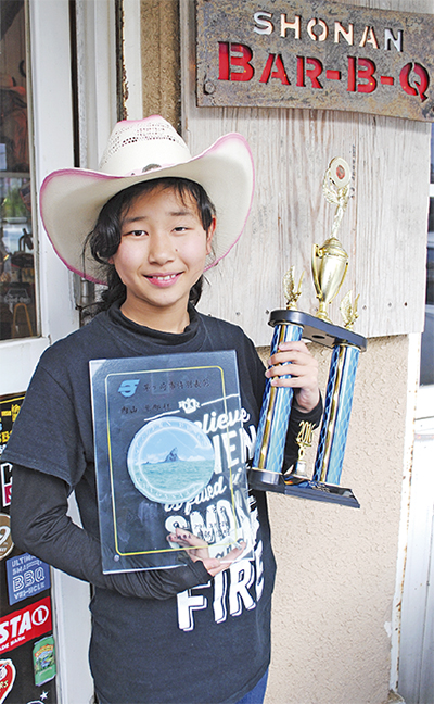茅ヶ崎市はこのほど「第37回アメリカンロイヤル・ワールドシリーズ・オブ・バーベキューキッズキュー」(6歳〜10歳の部)に出場し、アジア人として初優勝した内山華那(はな)さん(10)=東海岸南在住=に市特別表彰を贈った。