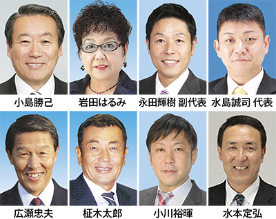 自由民主党茅ヶ崎市議団に所属する議員は次の8名です。水島誠司(代表)、永田輝樹(副代表)、岩田はるみ、小島勝己、水本定弘、小川裕暉議員と、議長経験者の柾木太郎、広瀬忠夫議員は顧問として参画します。