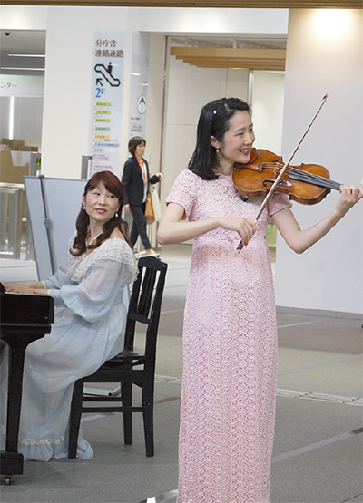 「ふたりのハートフル・ミニ・コンサート」が5月9日に茅ヶ崎市役所本庁舎1階市民ふれあいプラザで開催された。これは(公財)茅ヶ崎市文化・スポーツ振興財団が主催したもの。市民文化会館リニューアル工事期間に市民の身近な場所で本格的な演奏に触れられる機会を提供しようと開かれ、約180人が訪れた。
