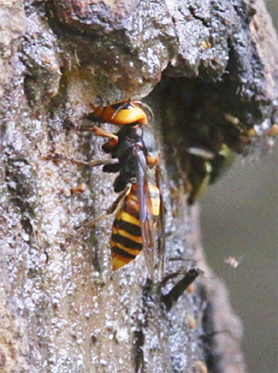 また、日中に樹液のもとにスズメバチが多数集まる二次被害も発生。特にオオスズメバチは近寄ったものを無作為に攻撃する習性を持つ。子ども向けの広場にも被害樹があり「利用を制限せざるを得ない状況もある」と注意を喚起する。
