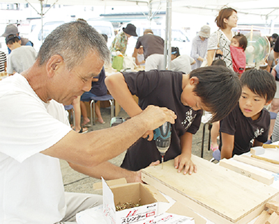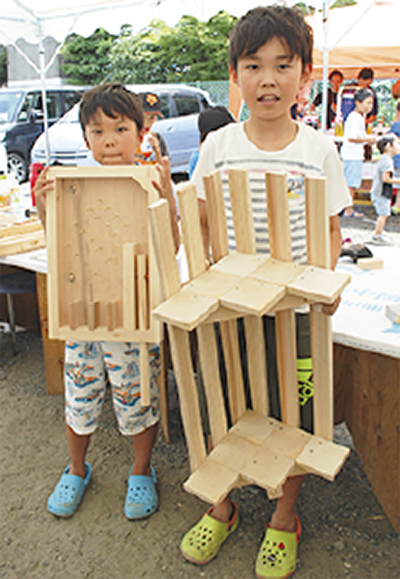 今回は「コーナーラック」と「スマートボール」作りに挑戦。「大工さん」たちから工具の使い方などの指導を受けた子どもたちは、額に汗しながら各々の作品作りに取り組んだ。市内西久保から参加した山崎琉斗君(11)は2回目の参加。コーナーラックを作成し「去年より道具がうまく使えた。自分の部屋に置いて本を並べたい」と笑顔を浮かべた。母親の絵美さんは「家ではなかなかできないことで良い経験・思い出づくりになりました」と話した。