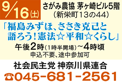 9月16日開催「福島みずほ ささき克己と語ろう!憲法☆平和☆くらし」