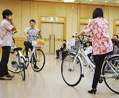 本番では、3人組が自転車で江の島へ向かう道中をコミカルに演じながら、イヤホンや携帯電話を使う「ながら運転」、一時停止違反、傘差し運転などの危険性や自転車の通行ルールを訴えた。同課では「交通事故の3割が自転車事故で、件数も昨年より増加している。ルールを守って安全に利用を」と呼びかけている。