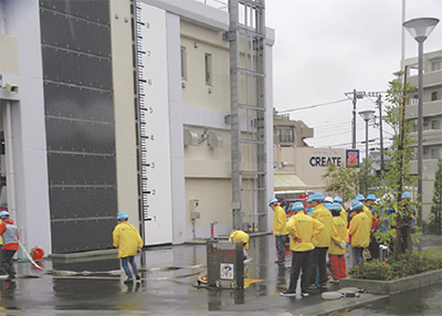 今年4月に現在地へ移転した同出張所は、敷地内に訓練用消火栓や放水訓練壁、登坂訓練壁を備えた放水訓練施設を併設しており、消火栓が設置されている実際の道路上と似た環境で訓練を行うことができる。