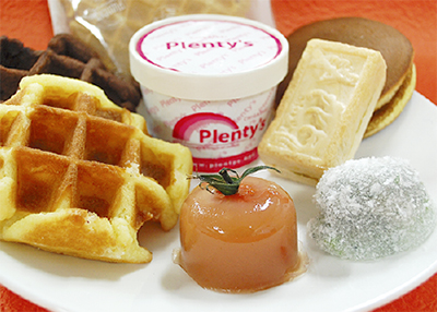 完成したのは、かぼちゃ餡の最中やミニトマト入りの羊羹、豆乳入りのワッフルコーン、さつまいもアイスなど。それぞれ食物繊維などが多く含まれている。プレンティーズとのコラボのプロジェクトリーダー・大呑佳鈴さんは「アイスだけでなく、その下のワッフルコーンにも着目して今までにない商品開発ができた」、三鈴の内田拓馬専務は「栄養士を目指しているだけあって、栄養価計算や試作が本格的。和菓子の固定概念を変える発想が新鮮だった」と話した。開発された商品は、11月26日(日)までラスカ茅ヶ崎3F正面入口で販売されている。午前10時から午後6時まで。