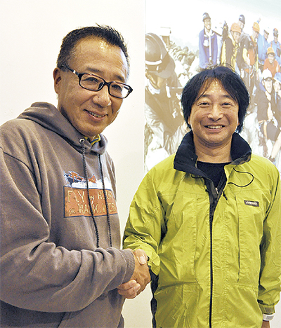 茅ヶ崎市在住の冒険家・九里(くのり)徳泰さん(52)の33年間にわたる軌跡を振り返る写真展「世界80カ国冒険の旅」が、先ごろ中海岸のCREATIVE SPACE HAYASHIで開催された。期間中には登山家の貫田宗男さん(66)を招いたトークイベントも行われ、人気テレビ番組で「天国じじい」の愛称で活躍する貫田さんの話を聞こうと多くの来場者が詰めかけた。