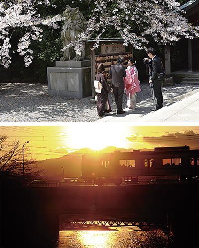 「沿線の花」部門最優秀賞は、寒川神社境内の桜の下のワンシーンを切り取った柳盛康さんの『佳日』。「風景」部門は、宮地陽人さんの『移ろい』。夕日を背景に、相模原市にある下溝駅付近の橋を通過する相模線を撮影した写真だ。市は「利用者だからこその写真など、相模線が広く親しまれていることを再確認できた」と話した。