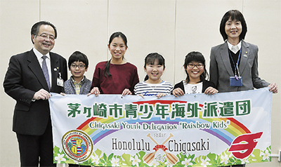 派遣団員は、野田慶多君(東海岸小5年)、仰木美和さん(小和田小5年)、川野真楓(まなか)さん(今宿小4年)、冨沢楓莉(ふうり)さん(松林小4年)。市では、昨夏に市内在住の小学4、5年生に「姉妹都市ホノルルに伝えたい茅ヶ崎の良いところ」をテーマに作文を募集。集まった47作品の中から選考、面接を行い、「自分の思いを自分の言葉で伝えられる」「積極性のある子」などの理由で4人を選んだ。