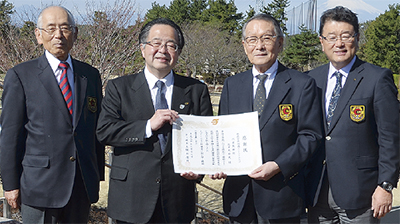 赤羽根でゴルフ場を運営する株式会社湘南カントリークラブ(佐々木幹夫代表取締役)が敷地内の土地約1500平方メートルを市に寄付し、3月17日に感謝状贈呈式が行われた。