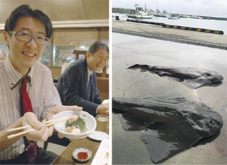 このほどレストランなんどき牧場(今宿)で開催された茅ヶ崎商工会議所サービス業部会主催の「ふれあい懇親会」で、「カスザメ」の料理が提供された。これは、茅ヶ崎漁港に2月下旬にあがったカスザメを、同店で調理したもの。