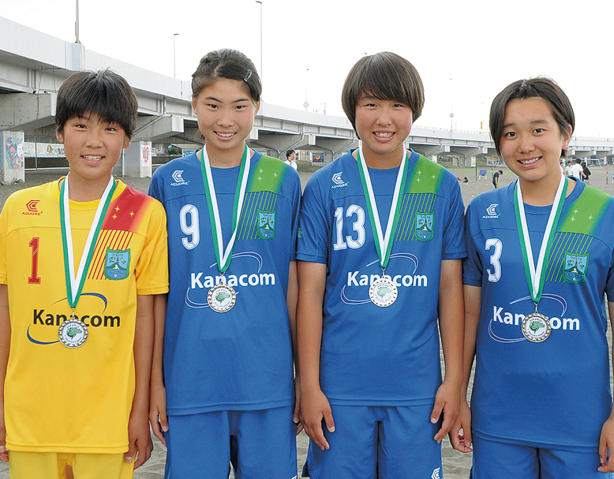 湘南選抜女子は、オンセFC(茅ヶ崎)、湘南ベルマーレU―15女子(平塚)、OSAレイアFC(大磯)の3クラブの選抜メンバーで構成。市内からは、廣瀬心さん(西浜中3年・GK)、石黒梨花さん(鶴嶺中3年・FW)、斎藤帆夏さん(中島中2年・FW)、今澤百夏さん(円蔵中2年・MF)が選抜入りし、活躍を見せた。