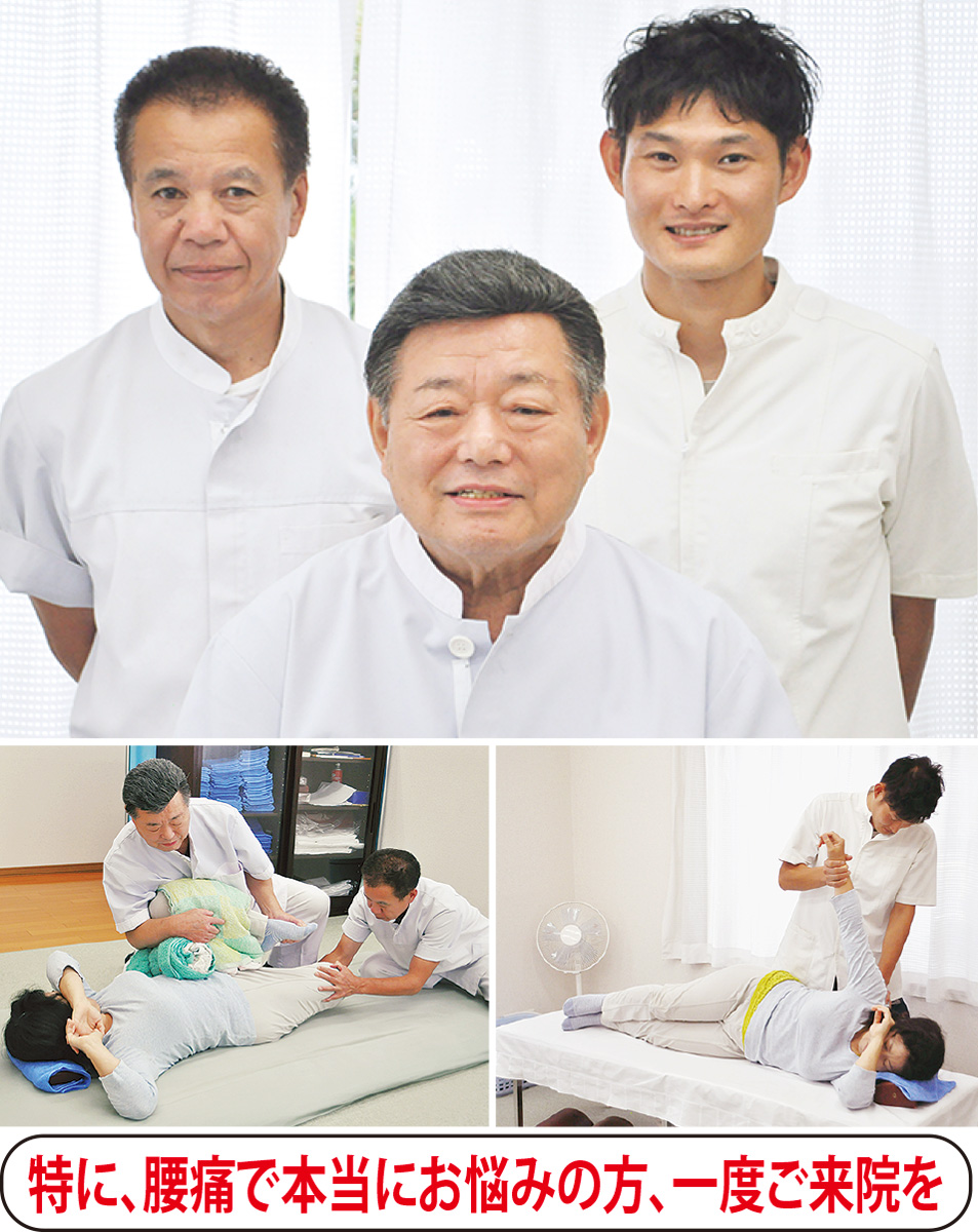 吉田院長は「特に腰痛関係には絶対の自信を持っています」と話す。その証拠に「お帰りの際に腰椎に痛みが残っていたら料金は頂きません」とキッパリ。来訪者からは「どこに行っても症状が改善せず、ワラをもつかむ思いで来たが、驚くほど楽になった」といった声があり、帰る時は皆笑顔に。施術は1回25〜35分と安全で、施術後のアフターフォローや自己管理法指導なども手厚い。相談無料。「まずはお電話下さい」。