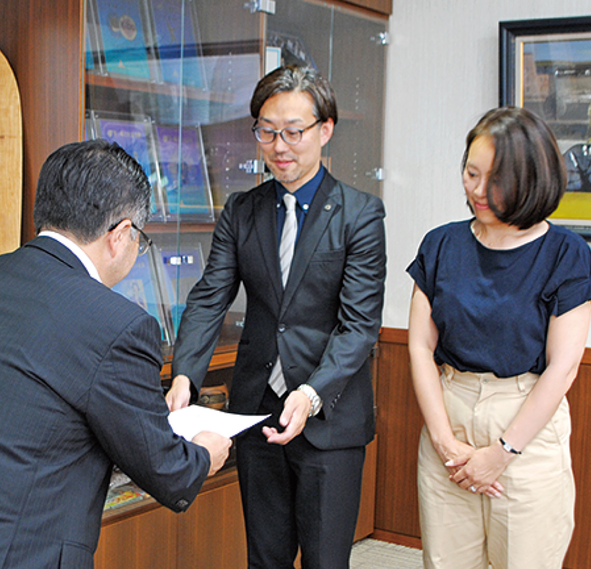 茅ヶ崎を活性化する取り組みを行っている団体「chigasaki0467」(高沢祐次代表=人物風土記で紹介)に7月3日、服部信明茅ヶ崎市長から募金活動に対する感謝状が贈られた。