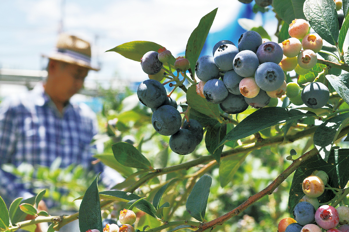ブルーベリーが収穫時期を迎え、茅ヶ崎市内の農園でも最盛期となっている。添田園(西久保1606/【電話】0467・57・7522)では、健康食ブームを機に10年前から育て始め、現在は5種類100本ほどを栽培。1シーズンの収穫量は300kgほどという。