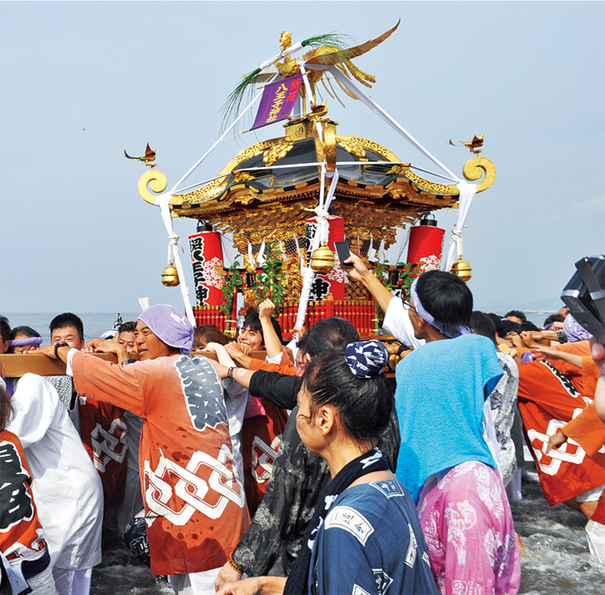 もう一方は、同じく江戸後期の資料『新編相模国風土記稿』に、鶴嶺八幡宮で寒川神社の伝承より古い時代から海で「みそぎ神事」が行われていたという記述。2つの伝承が合わさり定着し、1876年には名称を「浜降祭」に変更。1978年に県の無形民俗文化財に指定された。