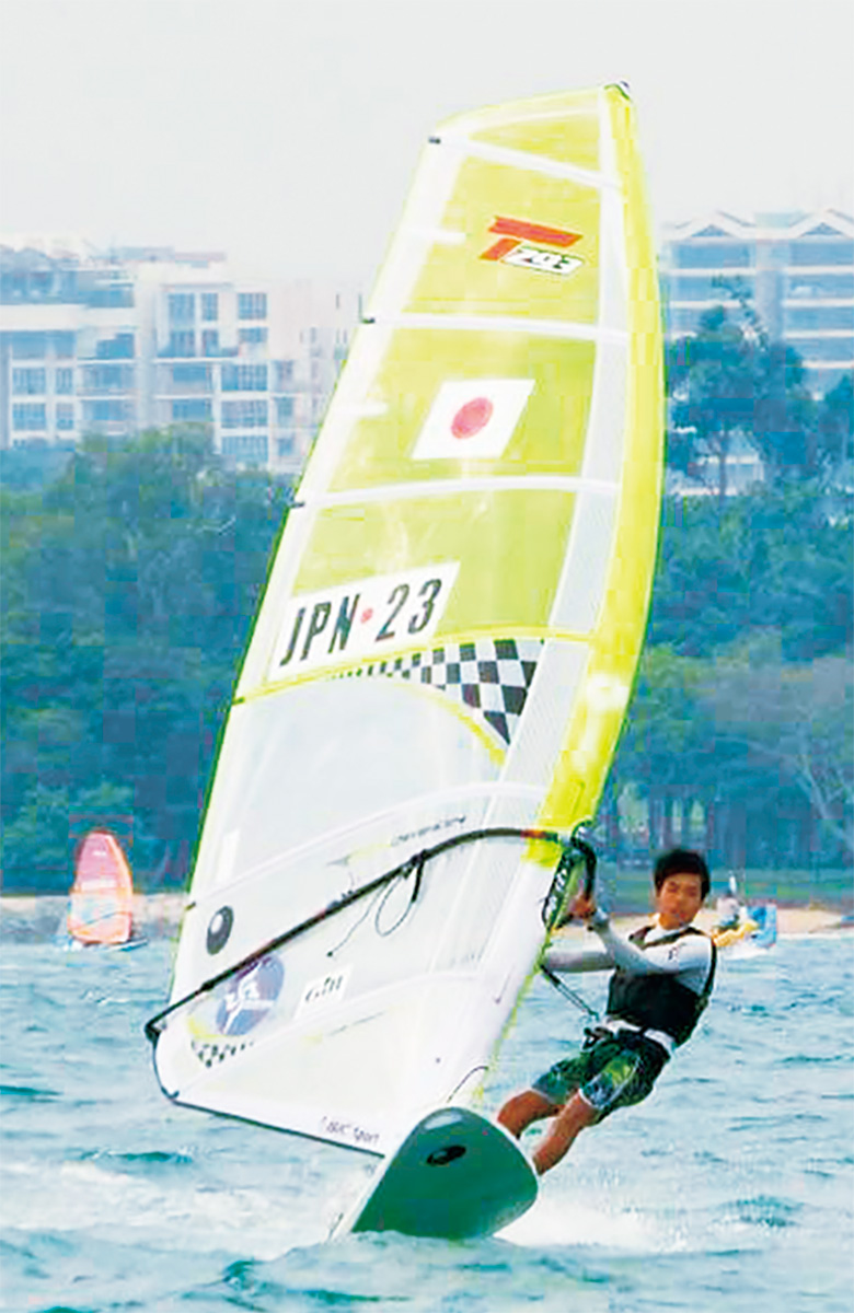 池田君は物心つく前から海に親しんで育った。父のウィンドサーフィン姿に憧れ、10歳の時に初めて「風に乗って」以来、その魅力に取りつかれた。