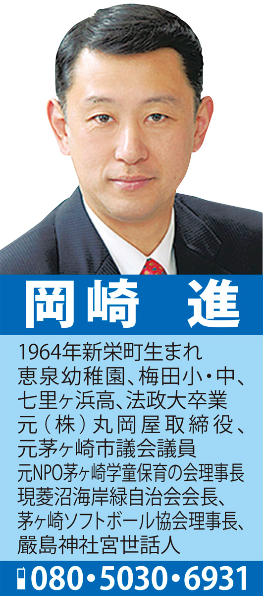 災害現場にボランティアで入ったり、災害ボランティアの議員連盟の視察で見聞したり、現場重視で施策を考えていきます。定年制度の延長を受け、自治会等の地域活動の人材確保が難しい中、自治会長や神社役員をしながら地域を支え、誰もが笑顔になれる茅ヶ崎を目指します。