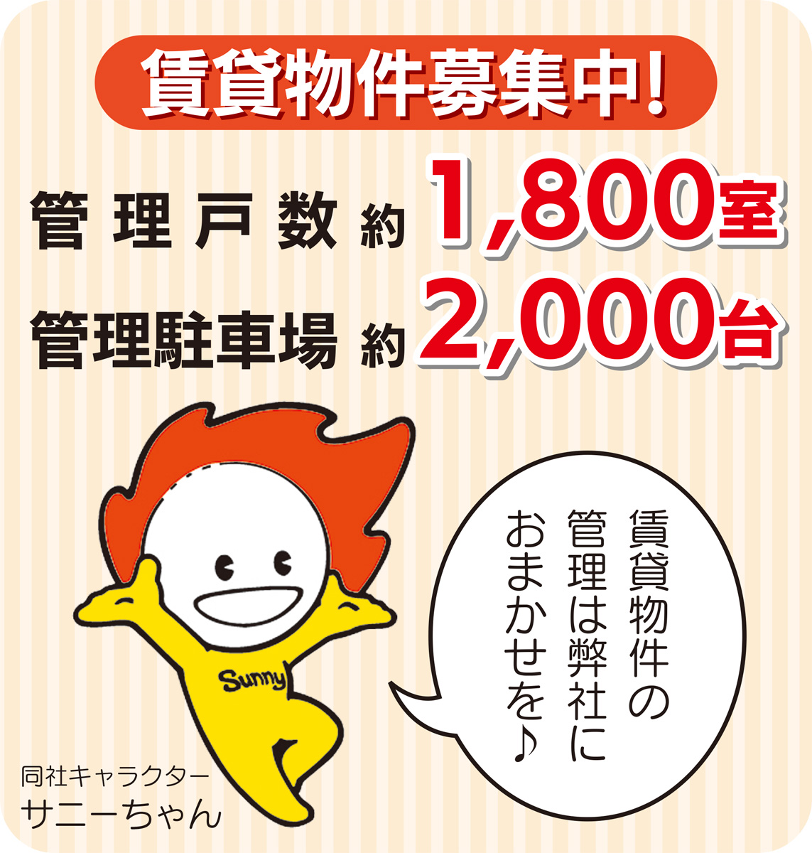 「空室が増えた」「退去時の敷金トラブルに困っている」「家賃滞納が多い」「入居者からのクレームや部屋のトラブルに対応できない」…。そんな家主の悩みに、管理戸数約1800室、管理駐車場約2000台を誇る同社では幾度となく対応してきた。