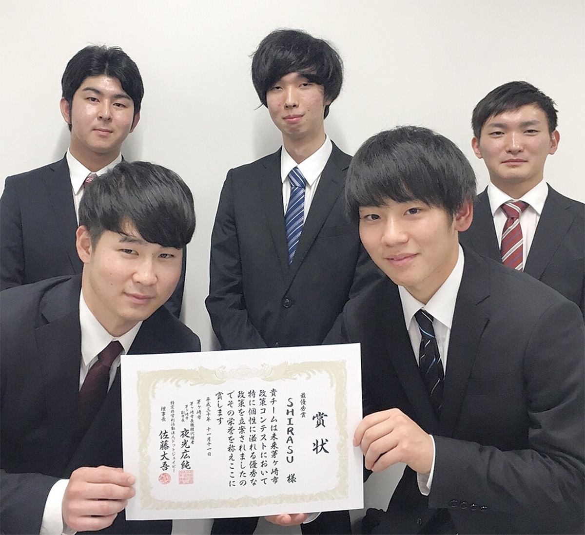 茅ヶ崎の若い世代が未来に向けて政策を立案する「未来茅ヶ崎市2018政策コンテスト」が11月11日、市役所本庁舎で開催され、文教大学の3年生5人で結成した「SHIRASU」が最多得票で優勝した。
