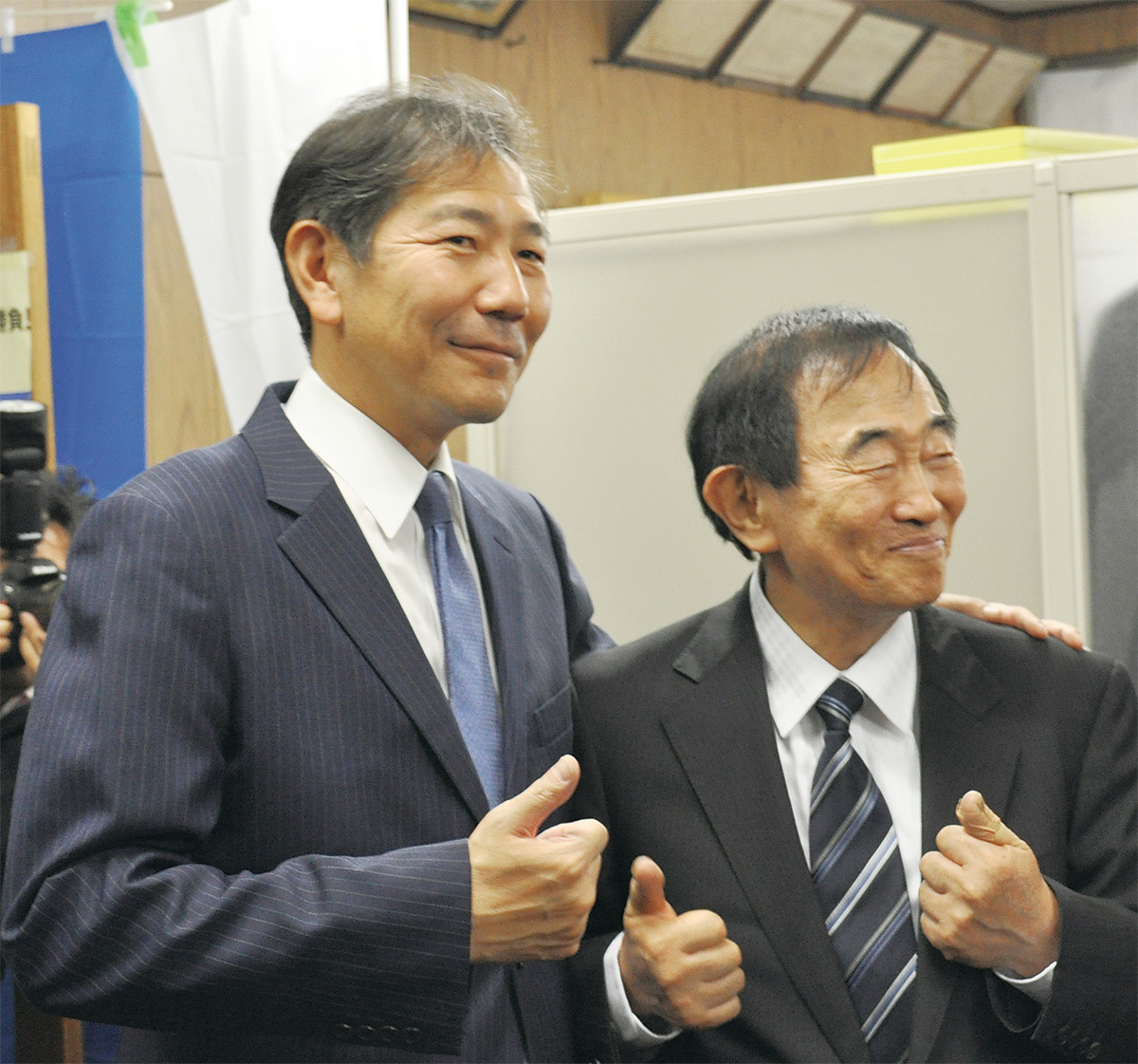 当選した2人は、20日に市役所で当選証書を受領。佐藤新市長は昨年の県議会議長就任時に同僚からもらった青のネクタイを着用し、「身が引き締まり、いっちょやったろうかという思い」と前を見据えた。