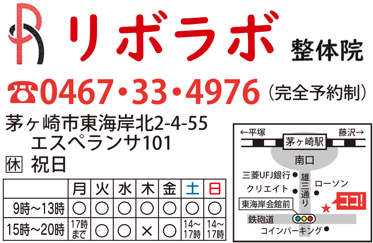 今年4月に東海岸に開業した「リボラボ整体院」が、オープンイヤー感謝祭を本日12月14日(金)から1月15日(火)まで開催。利用者から好評で、湘南初上陸の『レッドコード』を500円で体験できる。