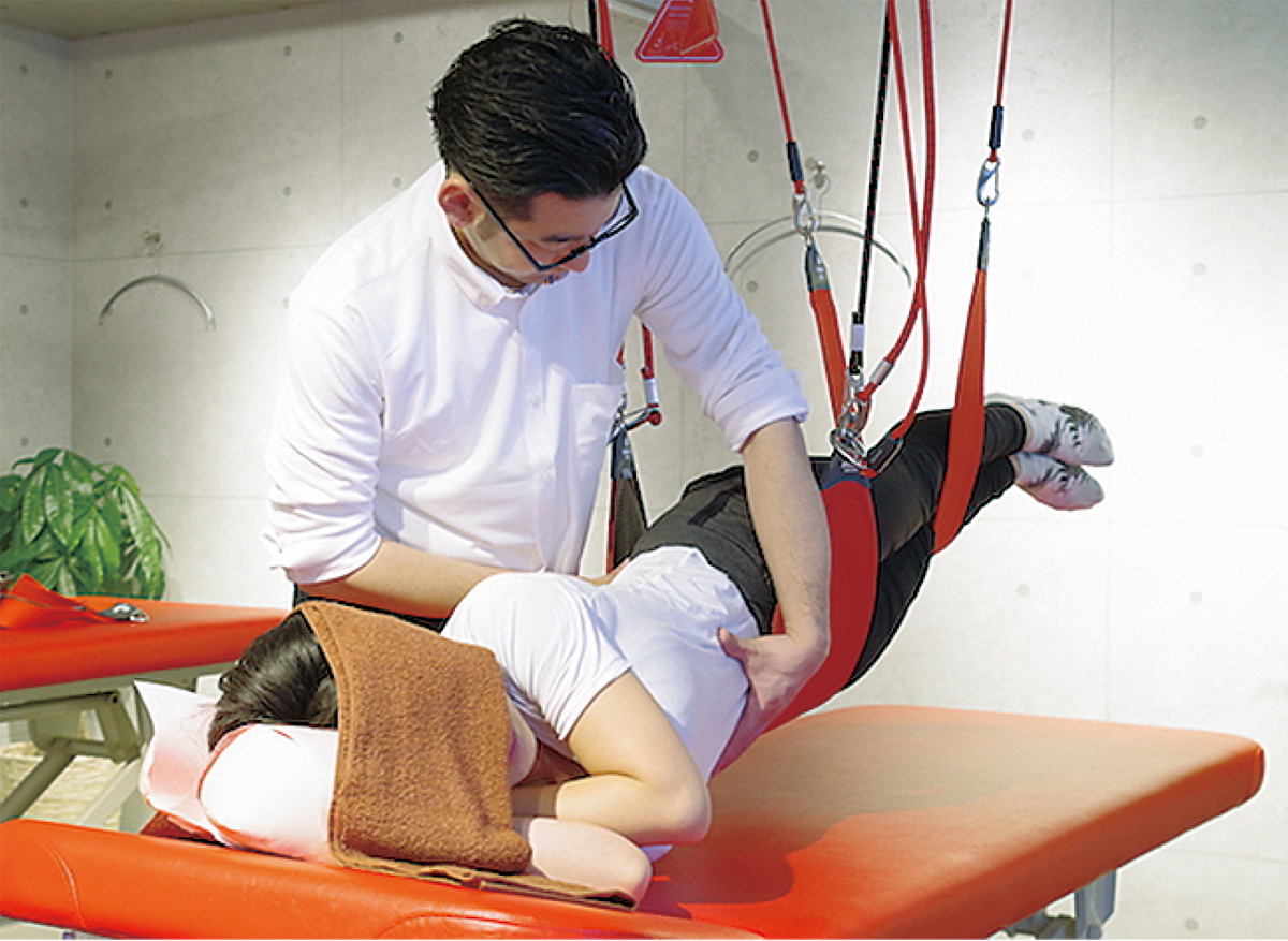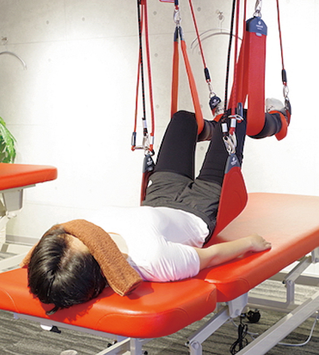首が重い、腰が重い、体が重い…。そんな違和感の原因のひとつに、重力という負荷がある。レッドコードはその重力をコントロールし、血流やリンパの流れ、関節のねじれを改善していく。「体がリラックスしていくのを感じることができますよ」(スタッフ)
