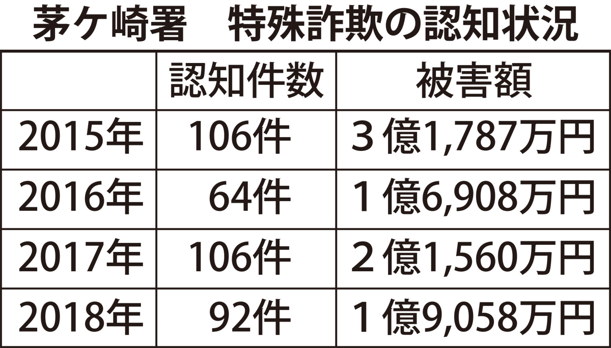茅ケ崎署管内では、昨年1年間の特殊詐欺被害総額は1億9058万円、認知件数は92件だった。