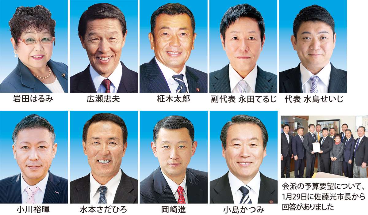 昨年10月、平成31年度の予算に反映するよう会派として予算要望を提出し、1月29日に市長から回答がありました。この回答を踏まえ第1回定例会に挑みたいと思います。