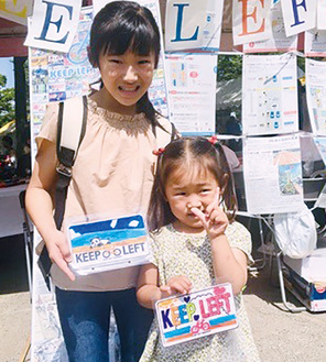 自転車の左側通行を啓発する「KEEP LEFT(キープレフト)」のプレートを作るワークショップが5月19日、春の市民まつり会場と雄三通りで行われた=写真。