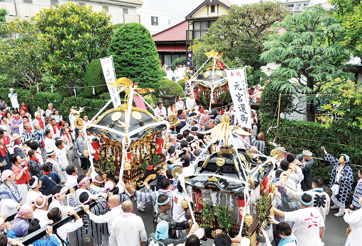現在は神輿の代わりに白木の御幣を担ぐ「御幣参り」として受け継がれており、この度、令和元年を祝して神輿での渡御を行った。