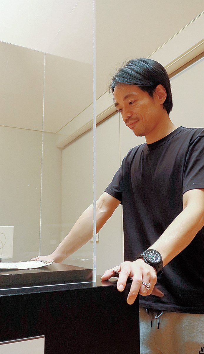 完成した『音鈴』は、風鈴にイメージのきっかけを得て作られた、わずかな揺れに反応し、光や音が出るインスタレーション作品だ。「テーマは風の可視化。触れることのできる“音”を楽しんでほしい」と微笑んだ。