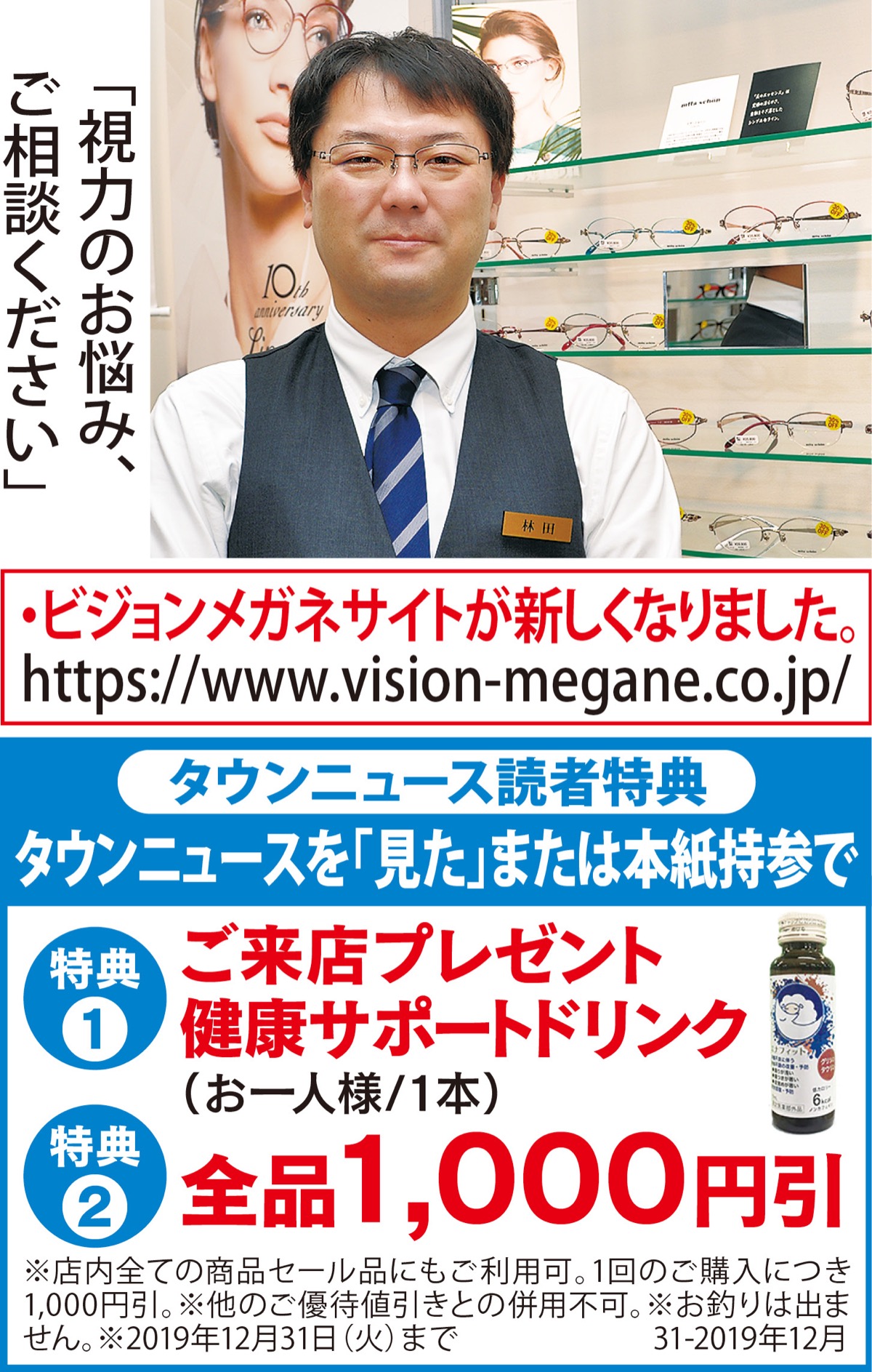 そんな人にお勧めなのがメガネのマエストロが「みえる生活」をサポートしてくれるビジョンメガネ。見え方、視力をしっかり測定して一人ひとりにぴったりのメガネを作ってくれる。「合わないメガネを掛けると、目が頑張って見ようとするので疲れ目や肩こりの原因になります。まずは、今の見え方の状態をちゃんと確認していただきたい」と同店。視力測定は無料。また、お顔の印象を変えるフレーム選びから購入後のメンテナンスまで安心してお任せできると評判だ。同店は今年で創業43周年、12月末まで地域の皆さまへ感謝を込めた歳末決算セールを実施、フレームは最大70%引、しかも全品薄型レンズ付。今回「本紙を見た人だけ」の特典あり。他社で購入のメガネも無料クリーニングや調整をしてくれる。実は見えない生活になれてしまっている人、視力で困っている人はこの機会にぜひメガネのマエストロに相談してみては。