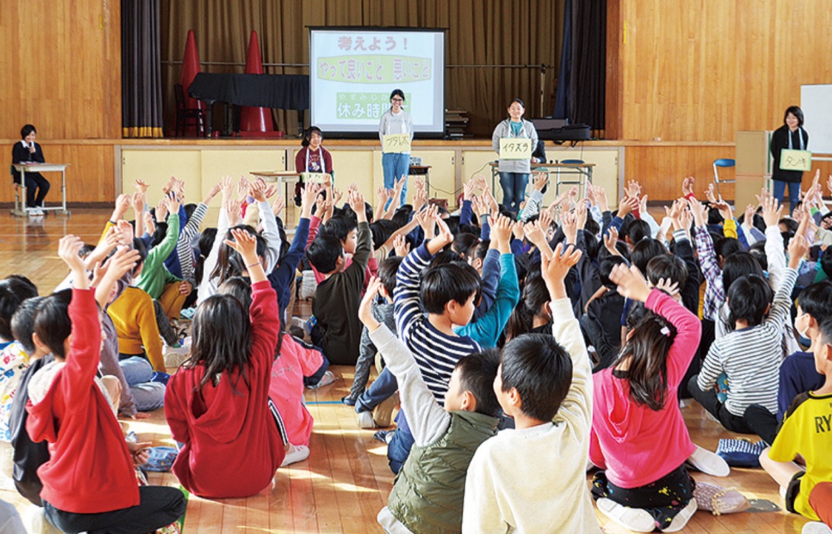 当日は、演劇部の4人が友人への暴力などを題材にした寸劇を披露し、放送部の渡部明侑実部長(2年)が「これはやって良いこと?悪いこと?」と児童に呼びかけた。演劇部の樋渡涼華部長(2年)は「みんな素直に話を聞いてくれて良かった。来年以降も続けられれば」と話した。