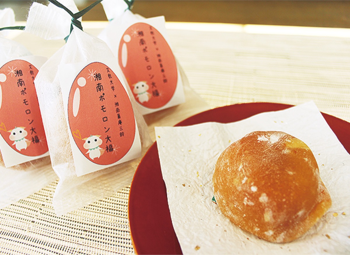 和菓子店の湘南菓庵三鈴(東海岸北)と文教大学健康栄養学部(行谷)が共同開発した『湘南ポモロン大福』がこのほど、「神奈川なでしこブランド2020」に認定された。商品は、市内で栽培されるトマト「湘南ポモロン」の認知拡大を狙って作られた。