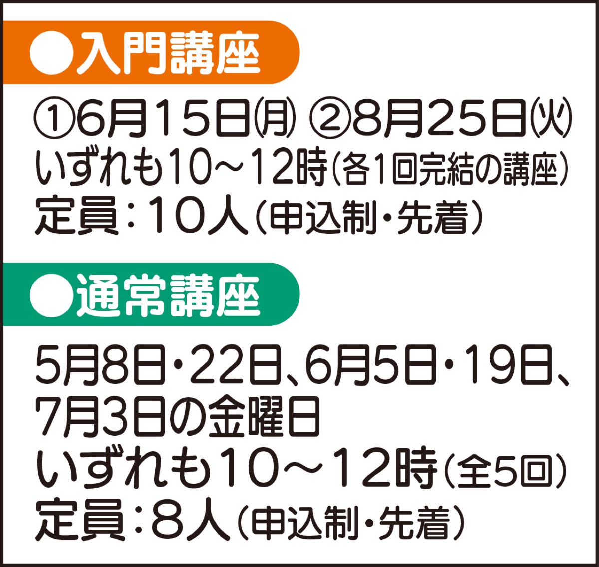 の12茅ヶ崎トラストビル4階)で開かれる講座は、2歳の子どもの保護者が対象の「入門講座」と、3歳から12歳までの子どもの保護者の「通常講座」の2種類。6月15日(月)と8月25日(火)の入門講座は、各1回完結で開催。5回シリーズの通常講座は5月8日(金)から。申し込みは市こども育成相談課【電話】0467・82・1111へ。※新型コロナの影響で変更・中止の可能性あり。