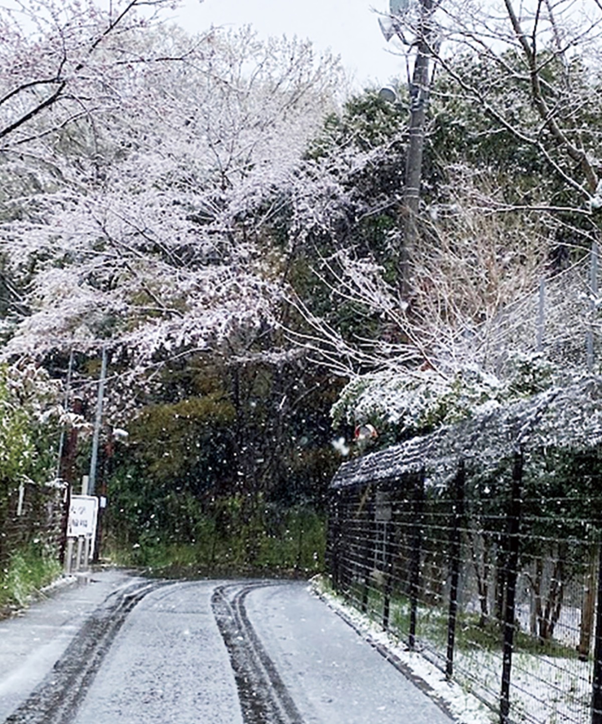 また、関東地方で積雪の予報が報じられた29日の午前11時ごろ、市内北部でも雨からみぞれに変わり、一面雪景色に。満開の桜に季節外れの雪が積もり、春から一転、冬へ逆戻りとなった=(左写真・29日午前11時ごろ文教大学付近)。