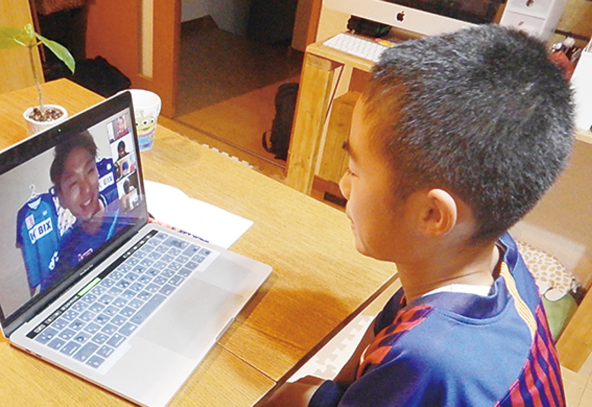 スタートは午後8時。川上選手を当時指導した飯尾直人コーチ(36)が昔話などをしながらあいさつした後、子どもたちにバトンタッチ。両者は画面越しに顔を見ながら会話を楽しんだ。
