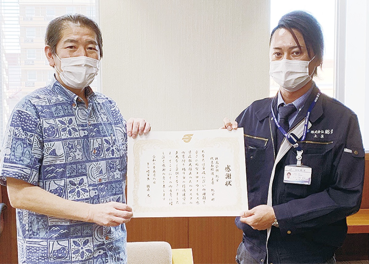 総栄は、一般住宅の宅地造成や開発工事などを手掛ける土木会社。「弊社を成長させてくれた地元へ恩返しをしたい」とマスクを独自に確保し、思いに賛同した飲食店とともに寄付を行なった。同社の上原代表は「マスクが役立てば嬉しい。苦難に一区切りついた際には、ぜひ飲食店に足を運んでほしい」と話した。