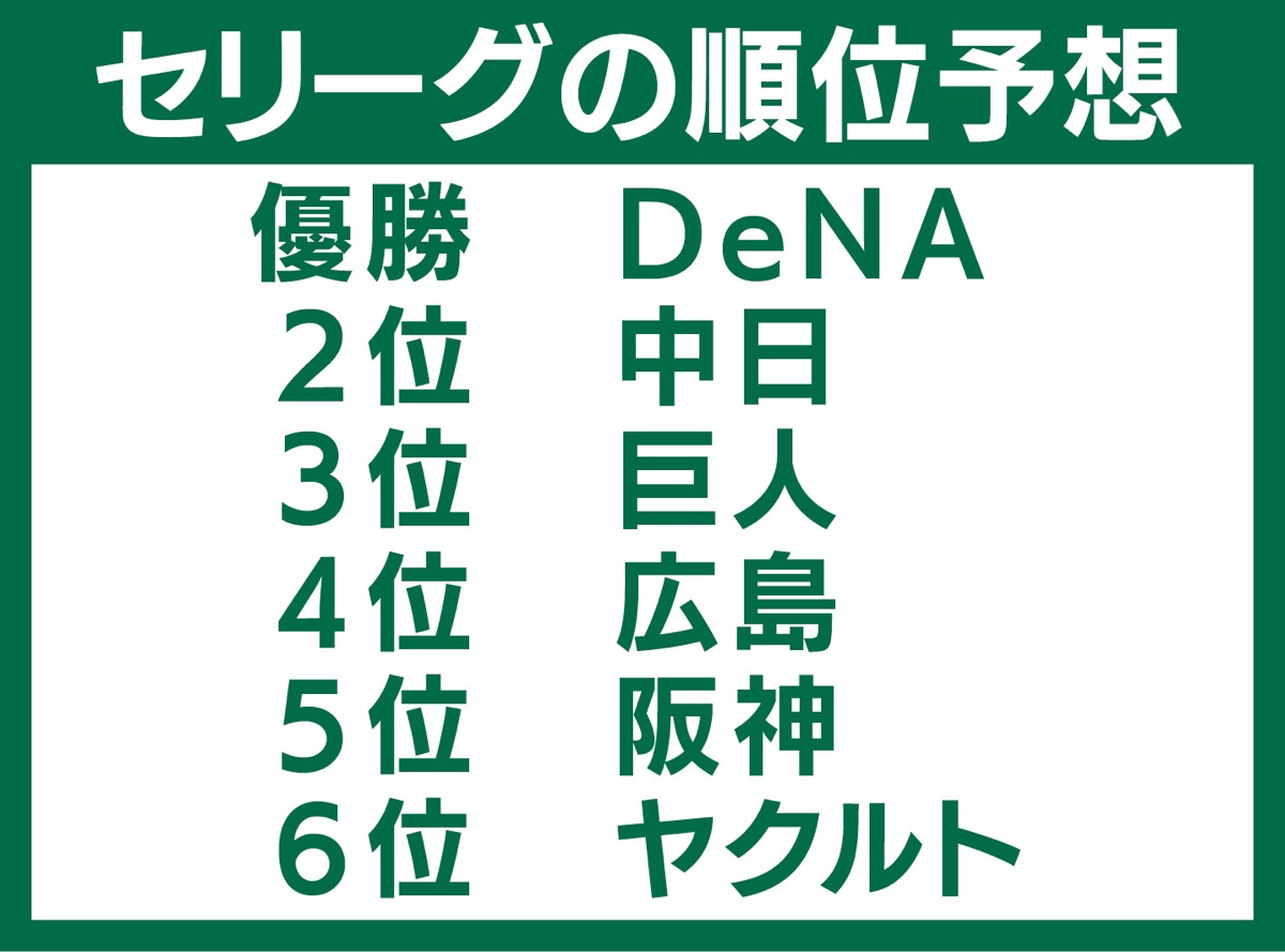 144試合ではなく120試合の異例のシーズンとなる今季。「全球団に優勝の可能性が広がった」とした上でセリーグを制するのは「DeNA」。主砲・筒香選手がメジャーリーグに移籍したが、早くも存在感を見せるオースティン選手など新戦力が加入したが「まだ未知数」と控えめ。しかしエース今永投手を筆頭に濱口、上茶谷、平良、石田の4投手が続く先発投手陣の豊富さをポイントに挙げ、「投手のチームDeNAは総合力がある」と断言。22年ぶりのVへ大きな期待を込めた。