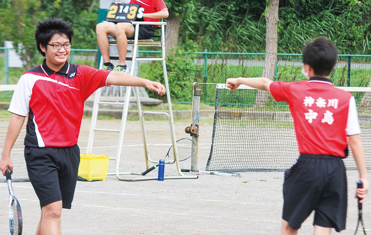 中島中のソフトテニス部は、7月11日の萩園中・鶴嶺中との練習試合が、3年生にとって最後の対外試合だった。集合時の間隔を開け、試合前後の手洗いを徹底。応援も大声は出さず、拍手中心とするなどの感染症予防策を施した。