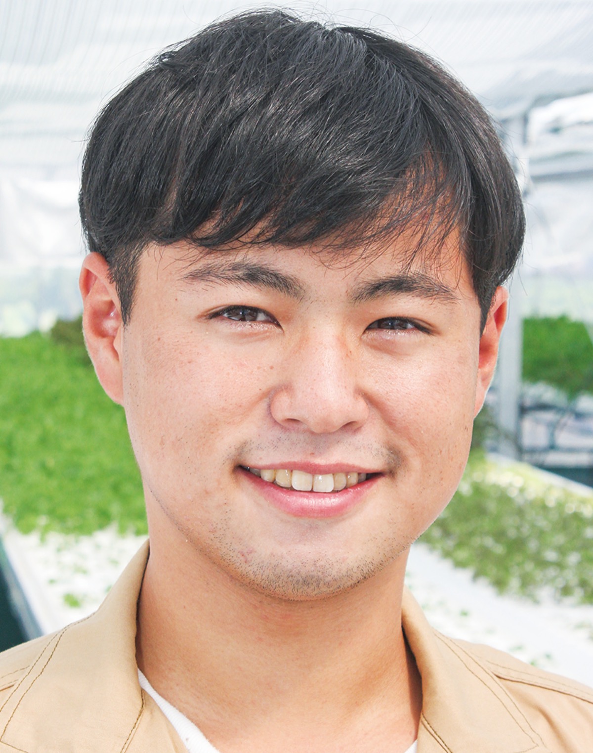 ○…父方の実家がある岩手県で、じゃがいも堀りをしたのが最初の農体験。5歳児にとって収穫は「お宝を掘り当てるようだった」。日々泥だらけになって遊ぶ小学生時代を経て、いつしか夢になっていた農業の道。海老名市の県立中央農業高校を卒業後、教師の勧めもあり、同市にある「かながわ農業アカデミー」へ進学。「2年の在学中に実習として8〜9種類を育てた。野菜によって育て方が異なるため、性格に合う野菜や合わない野菜がわかってきたのが面白かった」と振り返る。「お気に入りの野菜」というネギの農家へ50日間研修し、そこでスマートブルー(株)を紹介してもらったことが就職へのきっかけとなった。